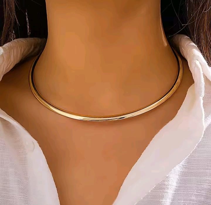 Collana alla schiava semplice con allacciatura dietro regolabile in acciaio color oro giallo