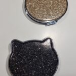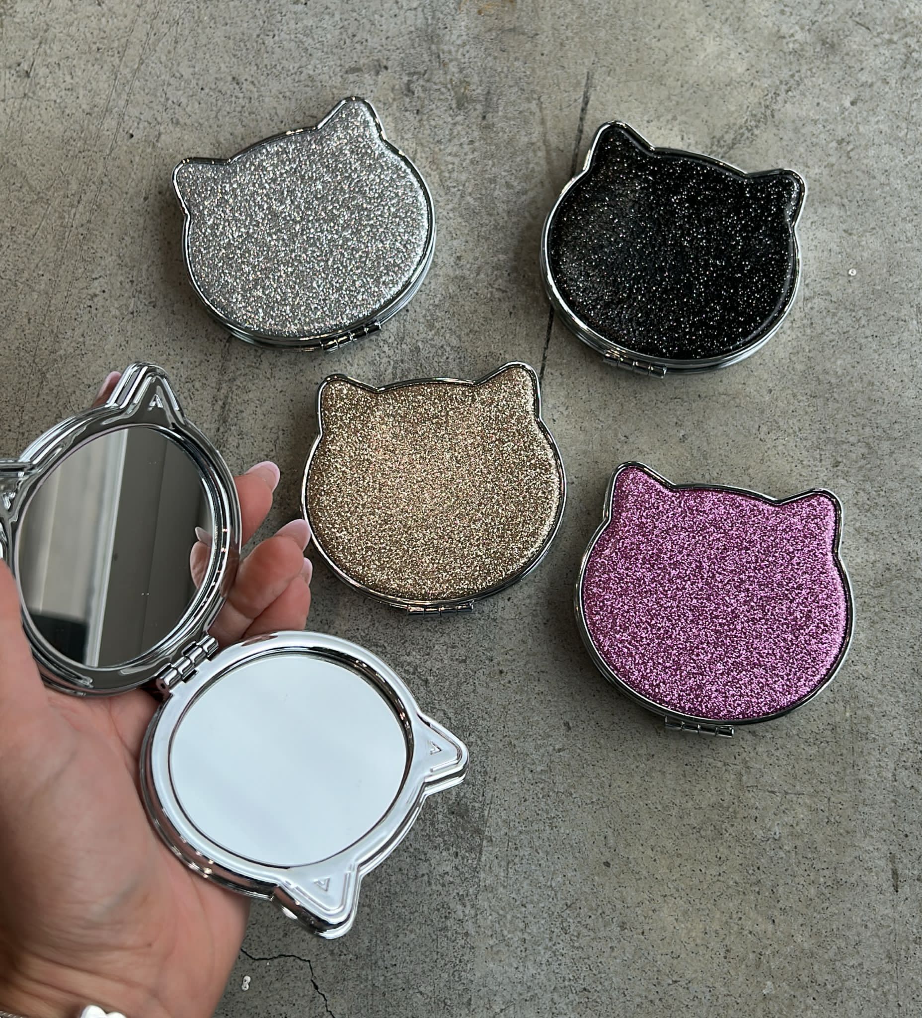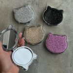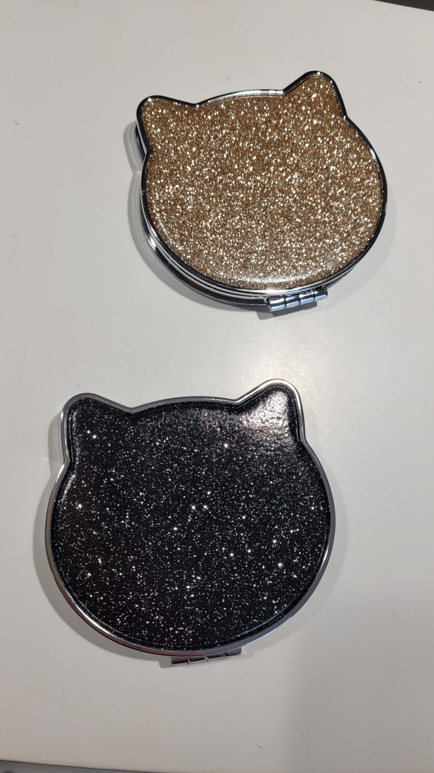 Specchietto glitterato color oro a forma di gatto